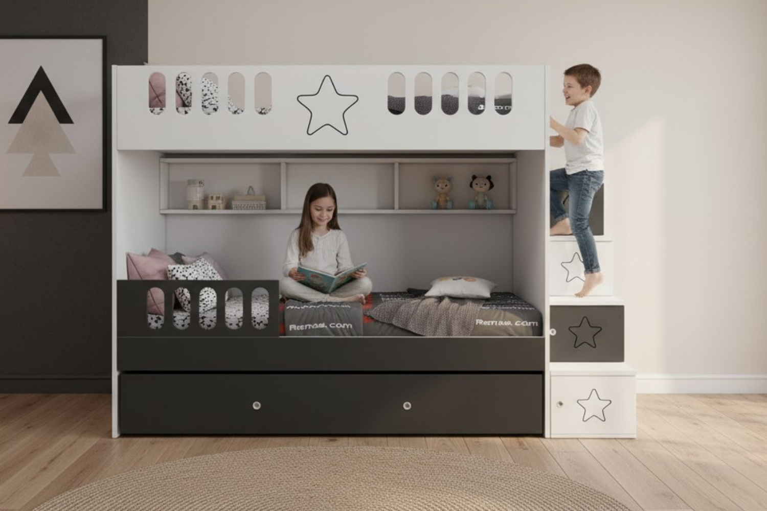 Komple MDF, Çelik Destekli, Astra Yavrulu Ranza, Antrasit Gri - Beyaz